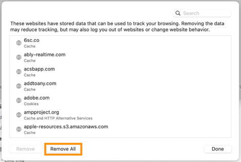 Click Remove All and then hit Done.
